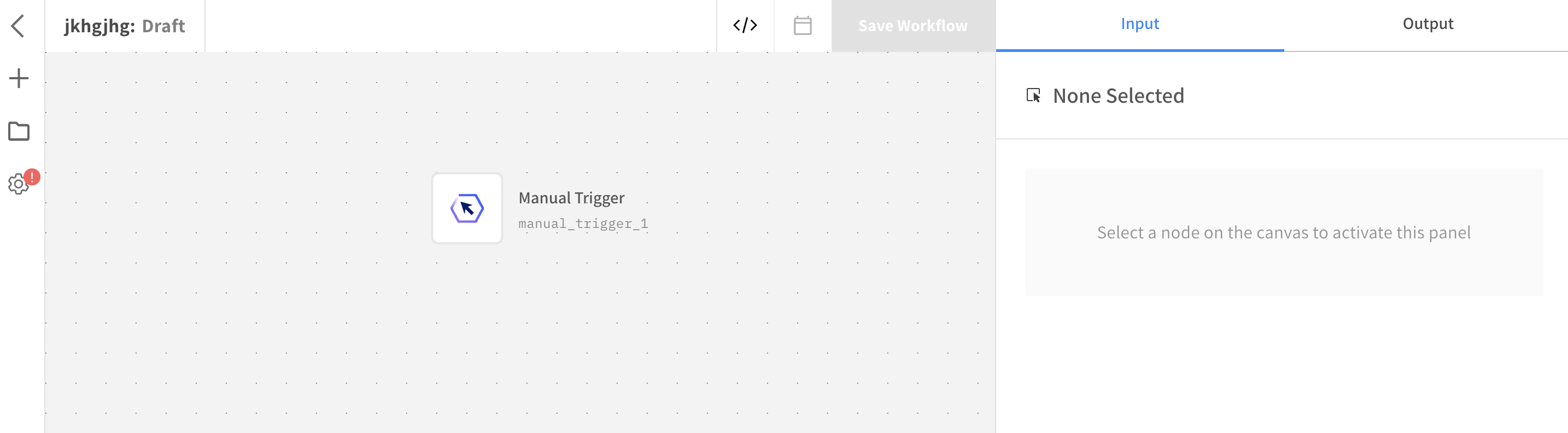 In the workflow interface you can drag, drop, and connect nodes on the canvas to create a workflow.