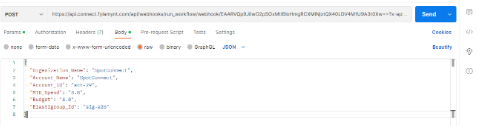 Postman can be used to quickly test the execution of the workflow with example data provided in the body.